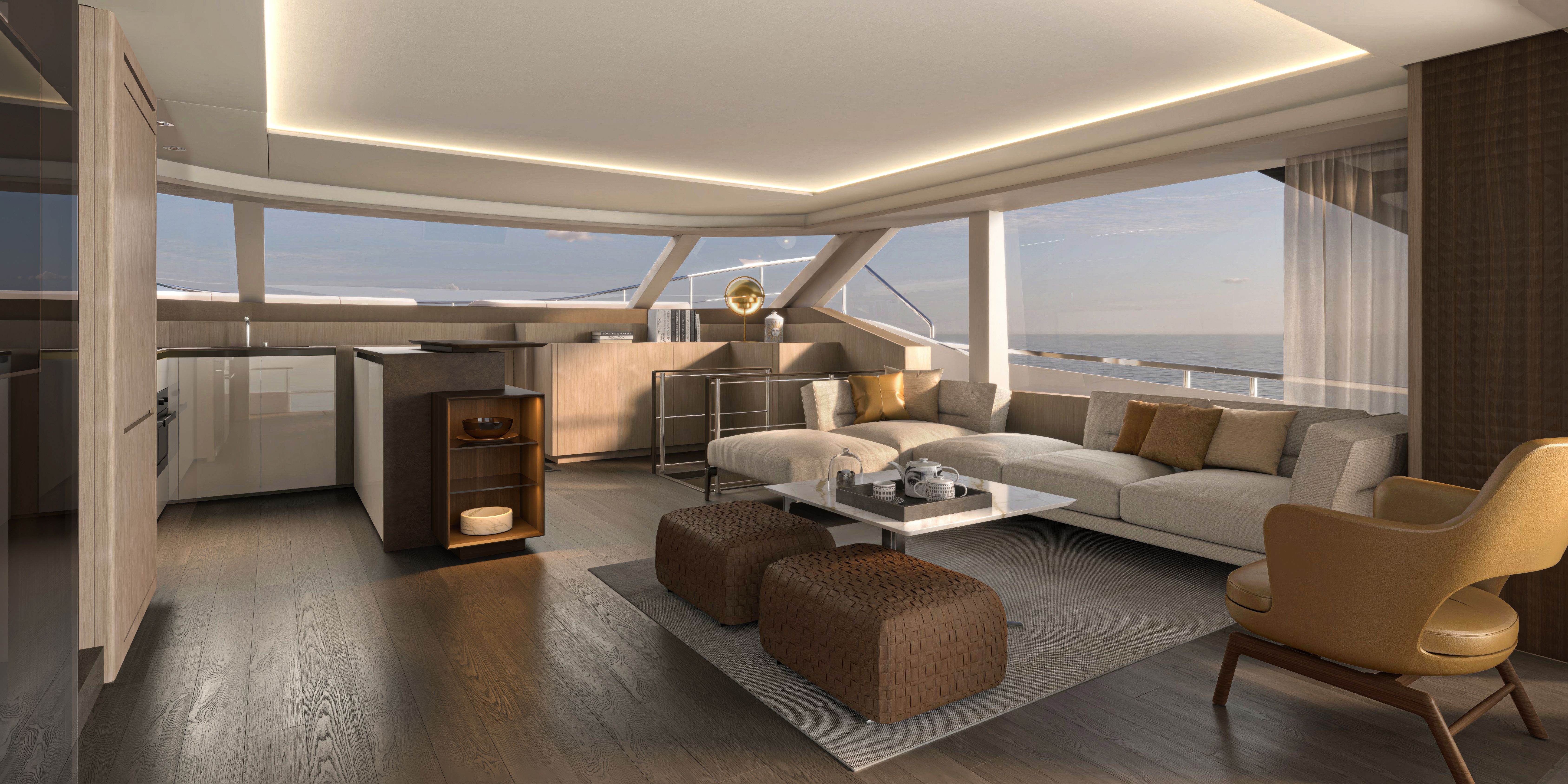 Ya sea en el mar o fondeado, el M7 ofrece una calidad de vida a bordo hasta ahora inimaginable en su categoría. Su configuración de multicasco ofrece espacio y un nivel excepcional de acabado, todo ello en perfecta armonía con la naturaleza.